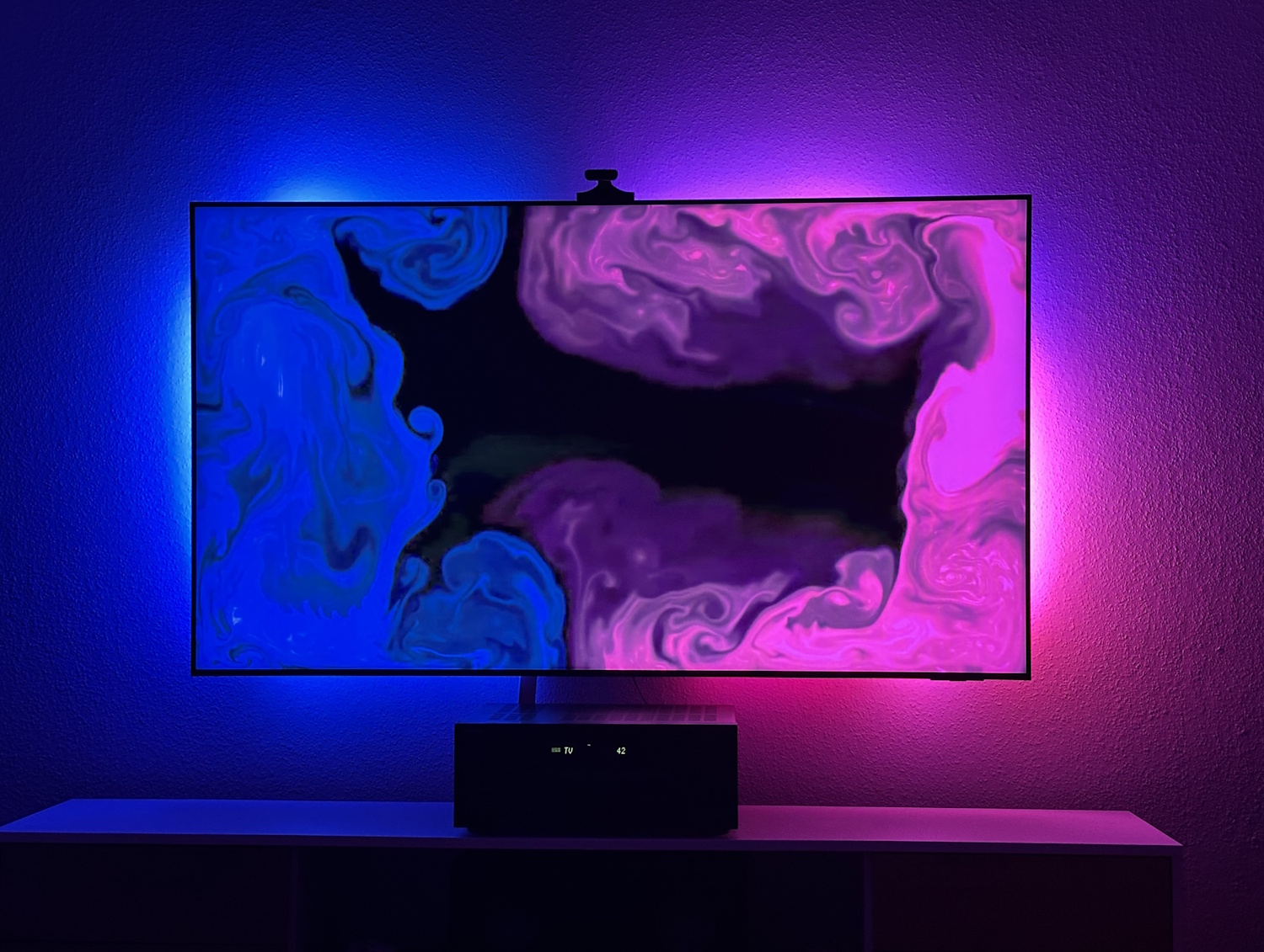 Wenn erstmal alles perfekt eingestellt ist, macht der Kino Abend direkt doppelt so viel Spaß. Wenn wir auch mit Reflektionen zu Kämpfen hatten, so konnten wir es gut in den Griff bekommen. Vermutlich mit anderen Displays eher weniger problematisch. Hin und wieder neigt das System aktuell noch zu Flackern, was aber eher in sehr dunklen Szenen auftauchen kann. Ebenso werden manchmal die verschiedenen Grautöne auf dem TV in Blautöne an den LEDs ausgegeben. Bei Serien oder Filmen, die eher eine düstere Atmosphäre darstellen, wie The Terminal List: Dark Wolf, kam es bei uns zu vermehrten Fehlern. Animationsfilme, die oft viele, bunte Farben ausstrahlen, wie Kung Fu Panda sind ein absoluter Hingucker. Dabei kommt auch die sehr schnelle Reaktionsfähigkeit des Systems zum Tragen, denn selbst bei schnellsten Szenen werden die LEDs punktgenau angesteuert. Jetzt gerade kamen viele der Aftermovies der Festival Season 2025 auf Youtube heraus und auch hier macht es viel mehr Spaß, wenn die bunten Szenen nochmal um den TV herum erleuchtet werden.