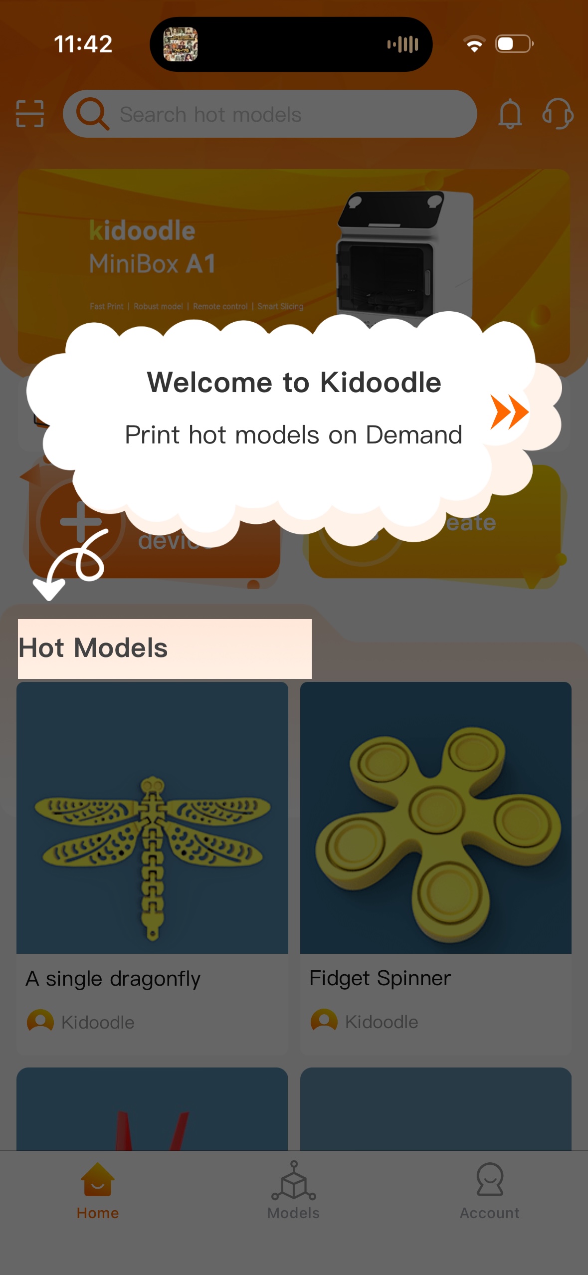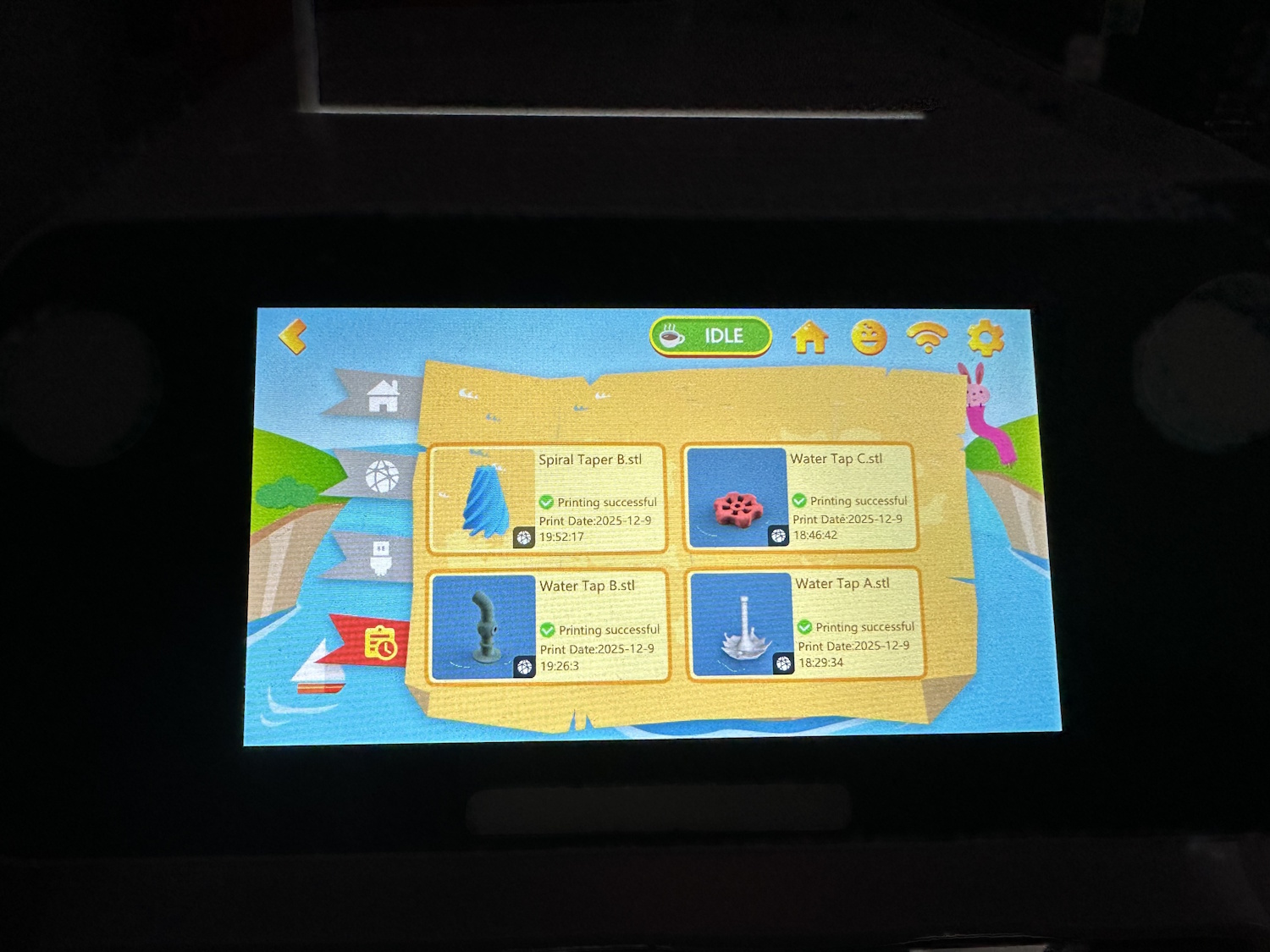 Der PrintyGo lässt sich mittels dem Touchscreen direkt am Gerät steuern. Auch Druckaufträge lassen sich direkt über das Gerät selbst starten, da Kidoodle kurierte und immer neue Modelle direkt in die Modellbibliothek hinzufügt. Diese sind bereits vorgesliced und können sofort gedruckt werden. Hierzu passend gibt es auch eine Kidoodle App fürs Smartphone, die sehr an das Interface des Druckers angelehnt ist und ebenfalls die Modellbibliothek wiedergibt. Die Auswahl und der Druckstart können somit bequem über das Smartphone oder Tablet gestartet werden – ob man natürlich seine Kinder noch mehr Zeit am Smartphone dafür geben möchte – fraglich. Die App ist nur über den Apple Appstore verfügbar, bei Android kann die App lediglich über Kidoodles Website heruntergeladen werden und muss als APK manuell installiert werden. Eine Installation also aus unsicheren Quellen ohne automatische Updates.