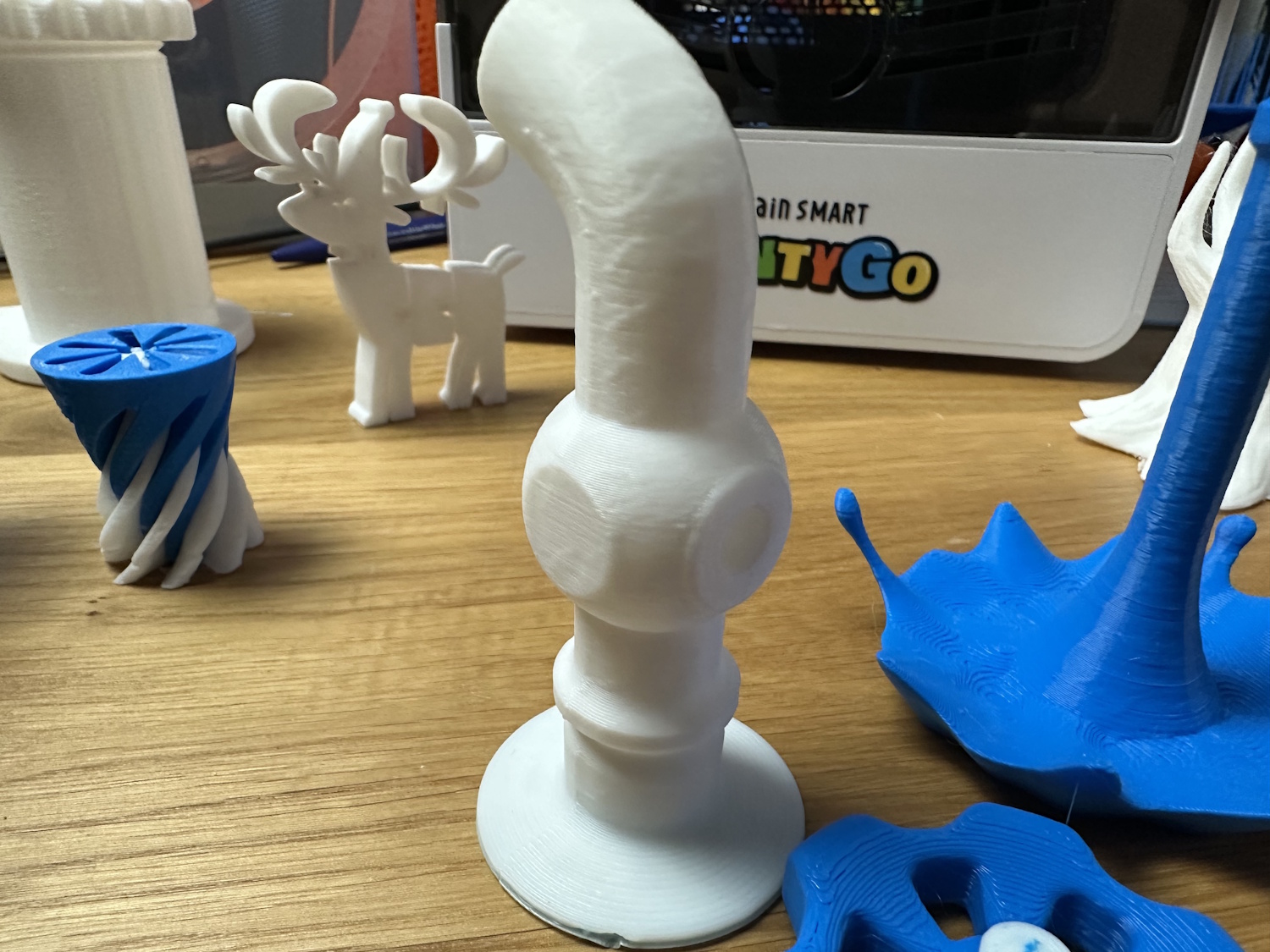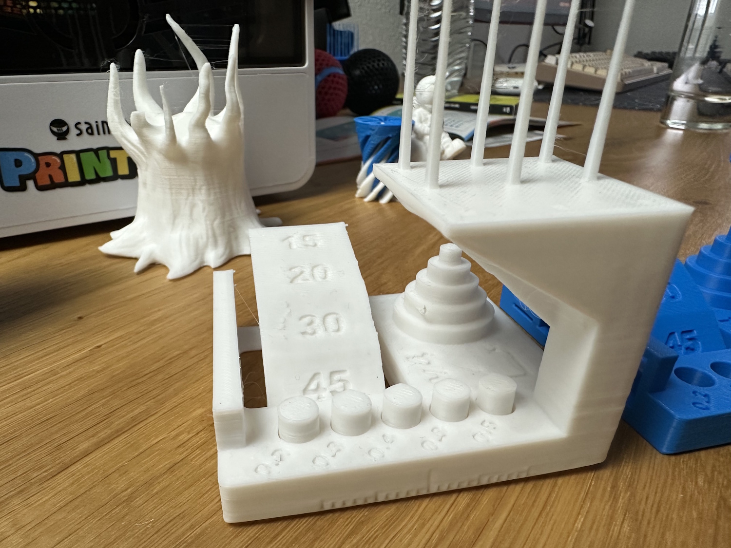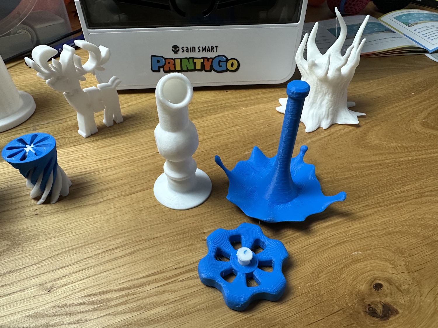 Wir haben noch ein paar weitere Testmodelle aus der Bibliothek gedruckt. Darunter sind echt schöne Spielzeuge, die nur einen Klick entfernt sind. Auch Deko Artikel oder einfach Zahlen, Rechenzeichen oder Buchstaben.