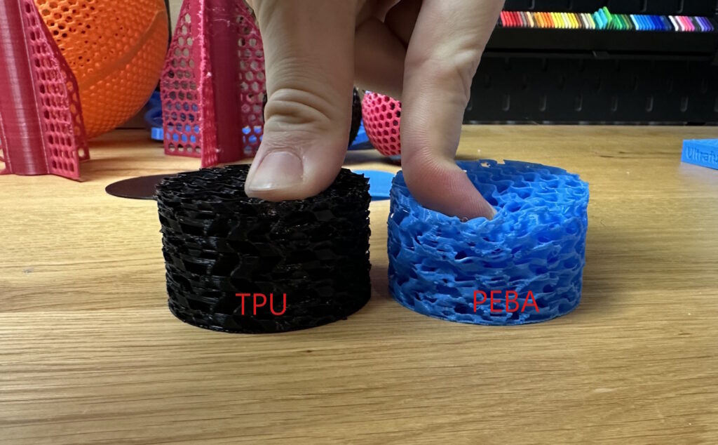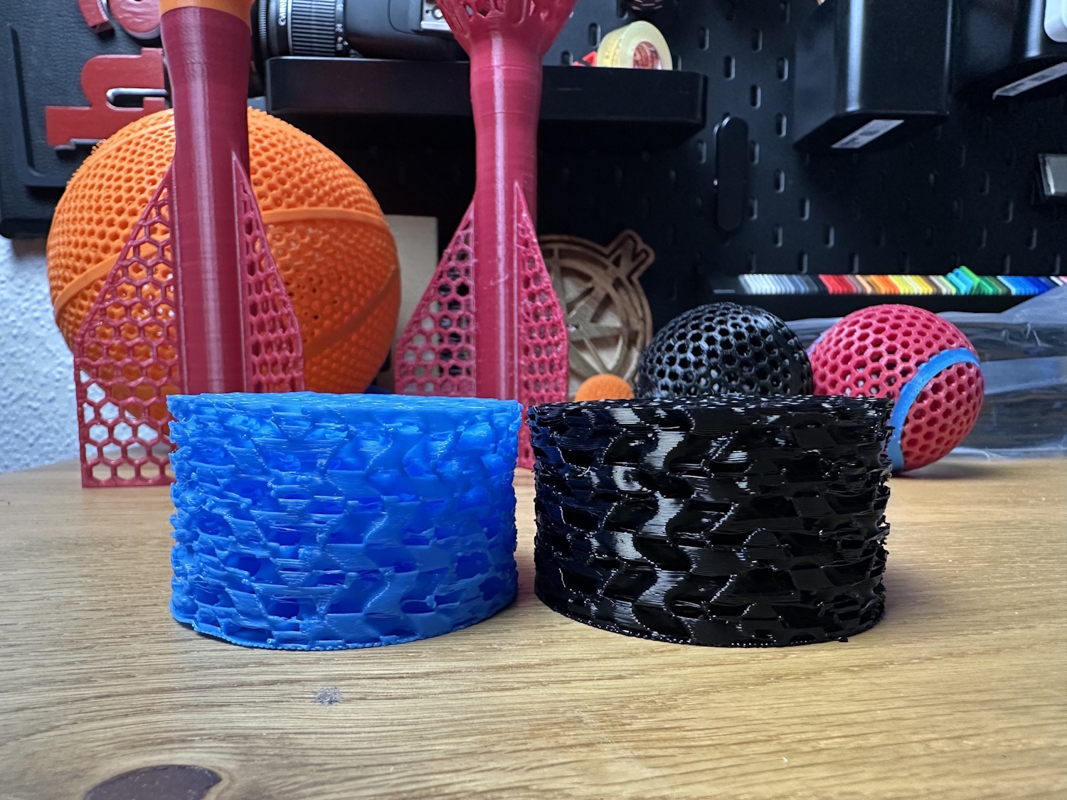 Neben verschiedensten Modellen, haben wir auch versucht mit Testdrucken die Angaben der Produktseite zu prüfen. Kälteelastizität, Dichte Vorteil gegenüber TPU, Zurückprallstärke, Druckgeschwindigkeit. PEBA soll auch einen höheren Reibwert gegenüber TPU haben.