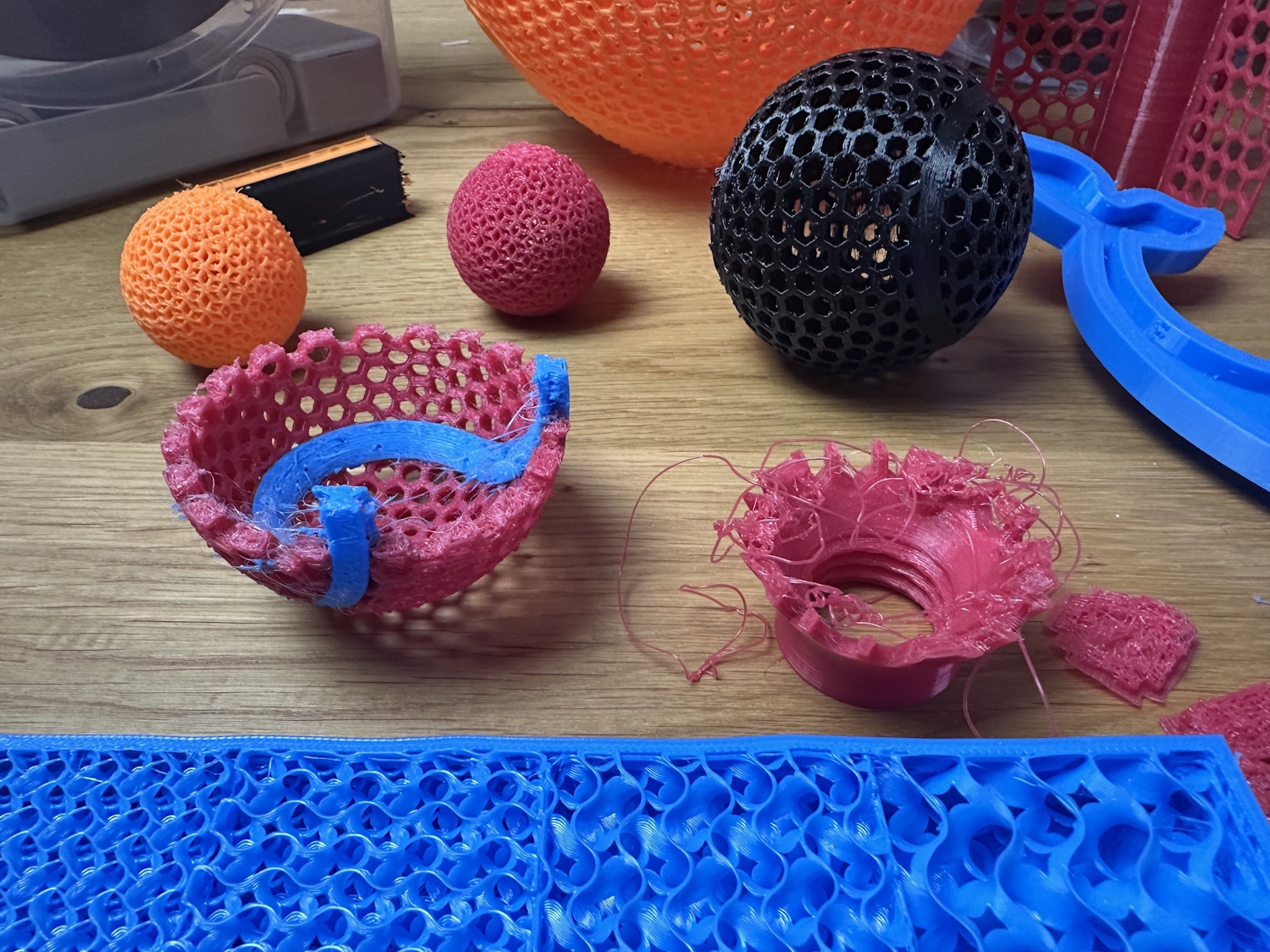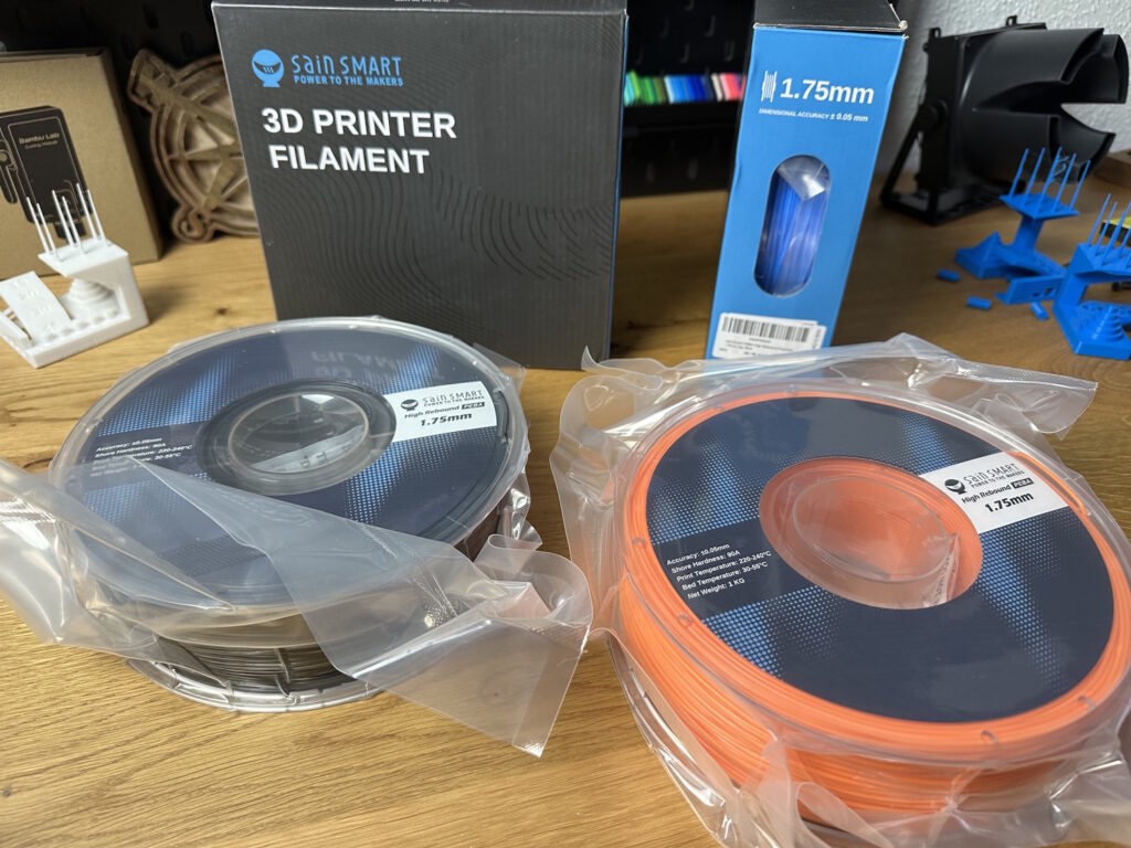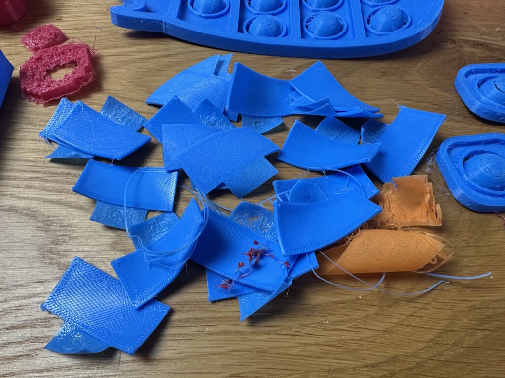 Bisschen Abfall entstand natürlich auch bei den vielen Testdrucken und beim Kalibrieren vom Filament.