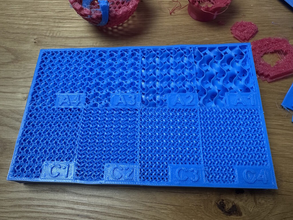 Mit diesem Test kann man die verschiedensten Härtegrade bei verschiedensten Füllungen erfühlen. Von 7 bis 25% in Gyroid Füllung. Sehr praktisch für zukünftige Projekte.
