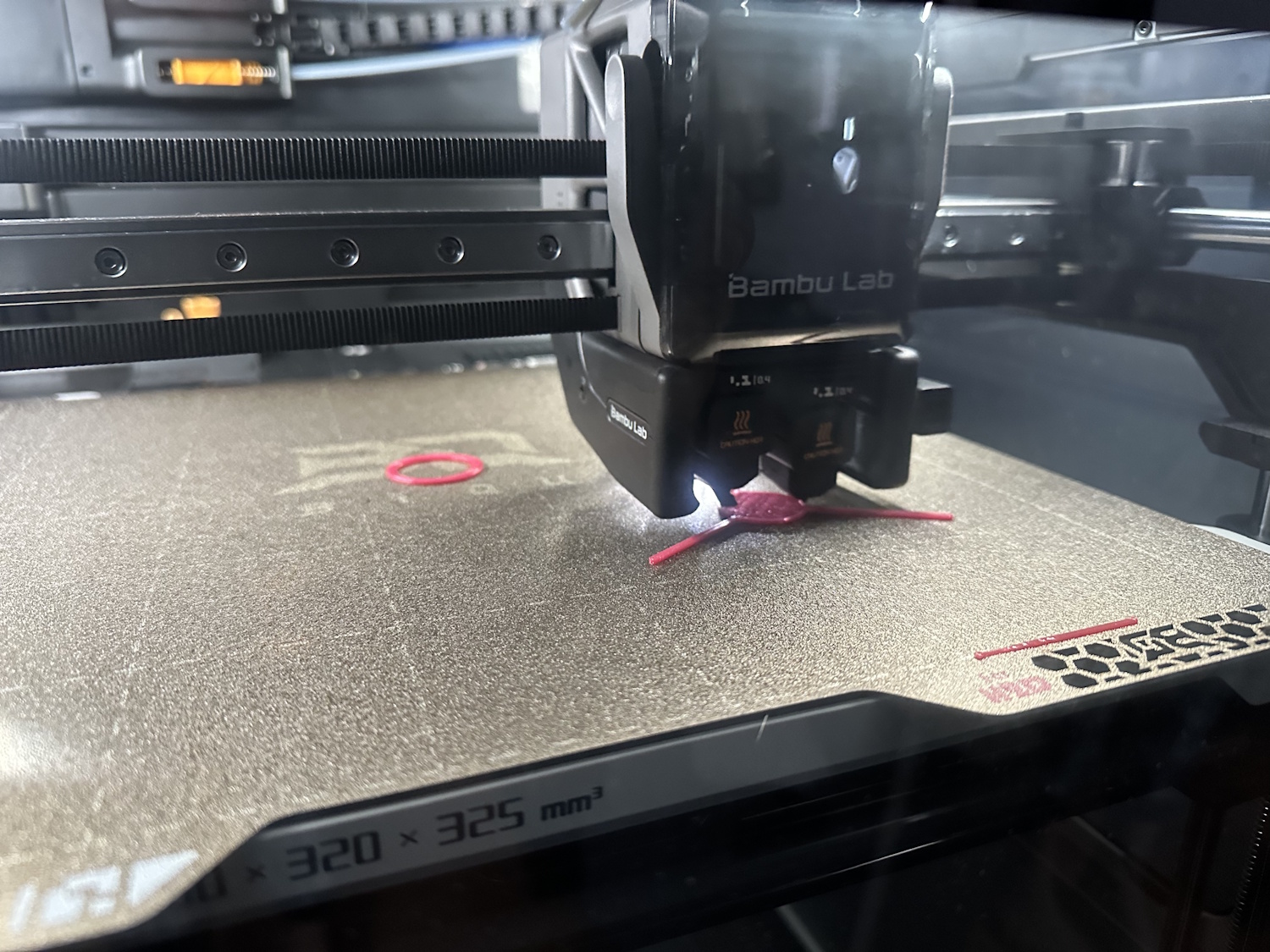 Ein paar Abbrüche waren natürlich auch mit dabei. Direkt zu Beginn kam beim 2 farbigen Tennisball kein Material nach, was der H2D normalerweise selbständig merkt – diesmal nicht. Die Rolle hatte sich verklemmt und drehte nicht weiter. Erst hier ist aufgefallen, was ich beim Unboxing beschrieben hatte. Die Rolle mit dem roten PEBA, die wir erhalten haben, ist nicht gleichmäßig Breit und hatte sich verklemmt.