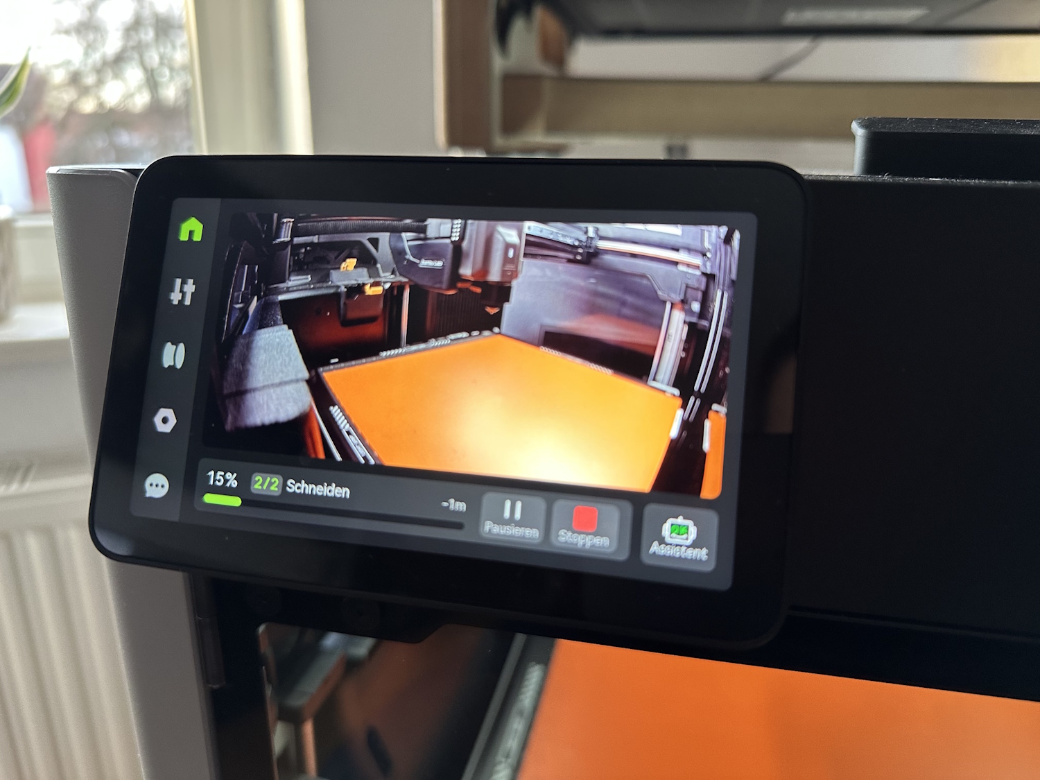 In der neuen Ansicht könnte die Birdseye Kamera jetzt einem die Ausrichtung Design zu Vinylfolie erleichtern, gerade wenn man bereits mit einem Reststück arbeitet und das Material bestmöglich ausnutzen möchte. Der H2D in der normalen Variante hat aber keine solche Kamera verbaut. Lediglich die Laser-Varianten kommen ab Werk mit dieser Kamera. Im Shop ist sie für 53€ erhältlich, sie lässt sich aber auch nur mit dem Lasermodul in Kombination kalibrieren. Manche Nutzer haben wohl auch ohne Kalibrierung erfolgreich einen Abgleich machen können und auch dort geschnitten wo geschnitten werden sollte aber das können wir aktuell nicht prüfen. Ich vermute, dass die Software mittels Laser verschiedene Punkte auf ein Testholz oder eine Pappe graviert und man mittels der Software diese Punkte mit optischen Referenzmarkern übereinstimmt. Somit kann die Bambu Suite später sicherstellen, dass eure kamerabasierte Ausrichtung des Designs im Bauraum auch wirklich genau so umgesetzt wird.