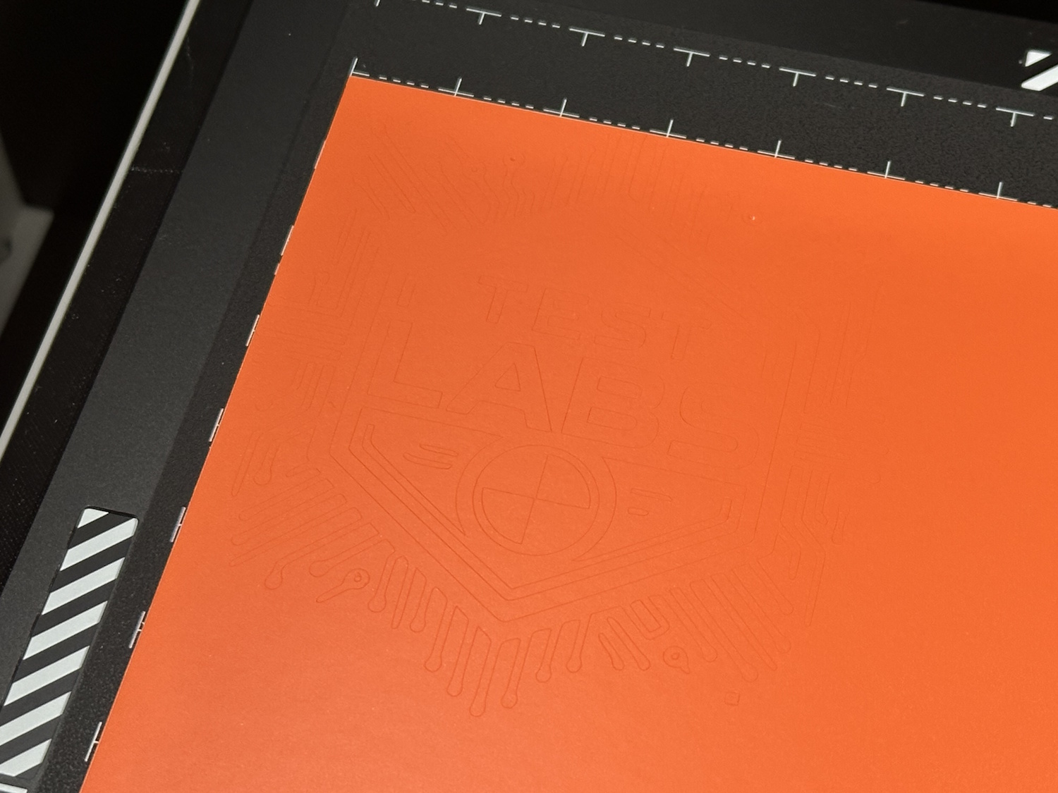 Nichts desto trotz ist eine Ausrichtung durch die vielen Referenzmarker möglich und wie ihr in den nachfolgenden Bildern seht, habe ich auch perfekt die Ecke getroffen. Wenn man jetzt natürlich inmitten verschiedener, bereits ausgeschnittener Folien etwas treffen will – schauen wir mal, es bedarf definitiv etwas mehr Messarbeit. Irgendwann soll die Birdseye Kamera auch ohne Laser kalibrierbar sein, aber dies wird erst per Firmware Update nachgereicht – Termin unbekannt.