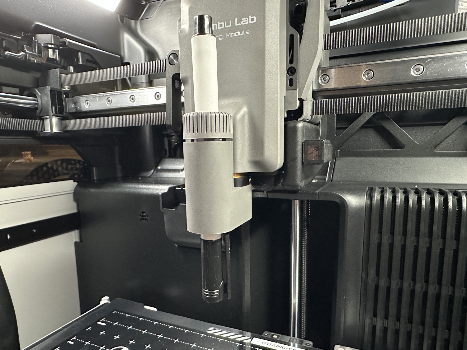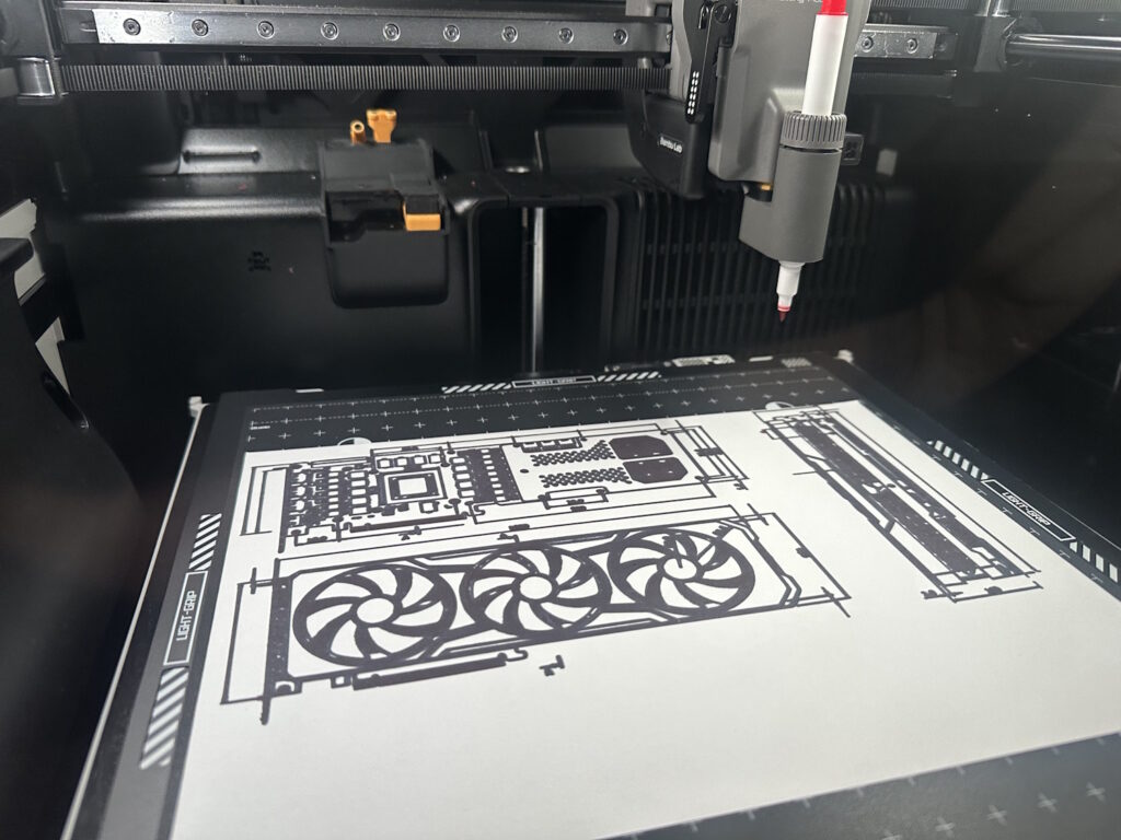Wie bereits vorher erwähnt, muss das Schneidmodul erstmal in der Konfiguration mit dem verbauten Messer kalibriert werden. Der Drucker prüft so selbstständig die Höhe, Messer zu Druckbett und kann so die Kraft entsprechend einstellen.