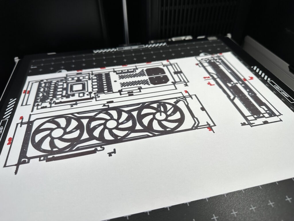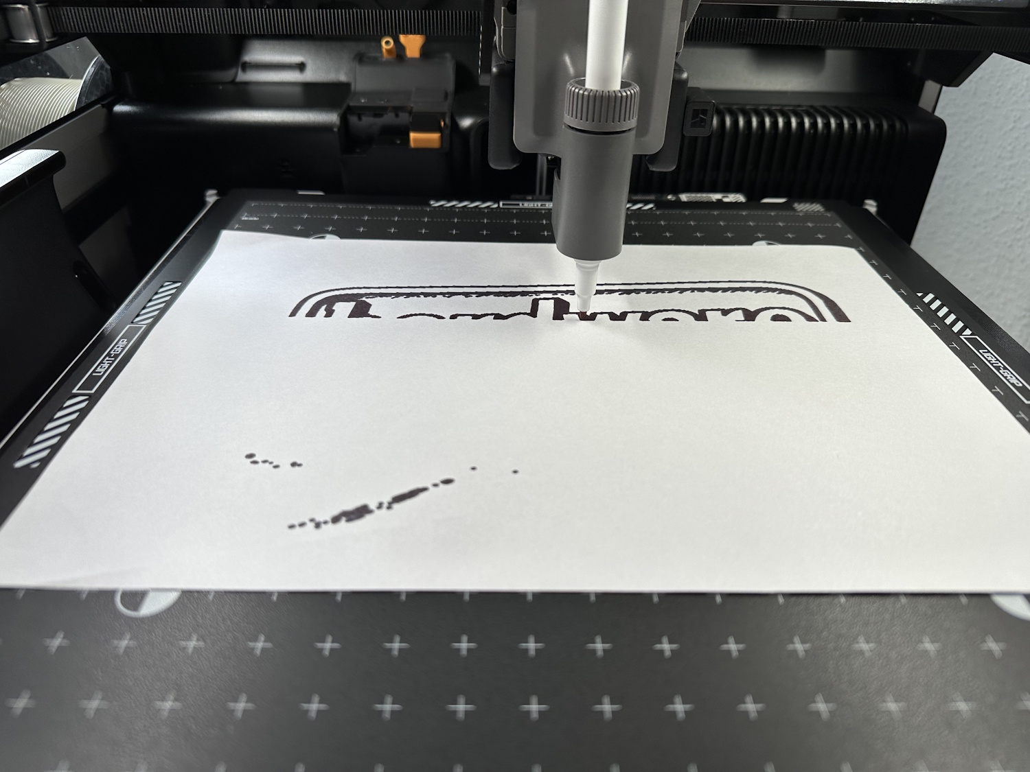 Wie auch schon beim Plotten nutzen wir die Bambu Suite zur Steuerung und haben ein KI generiertes Bild hinein geladen und auf Start gedrückt. Heraus kam diese Sprechblase: