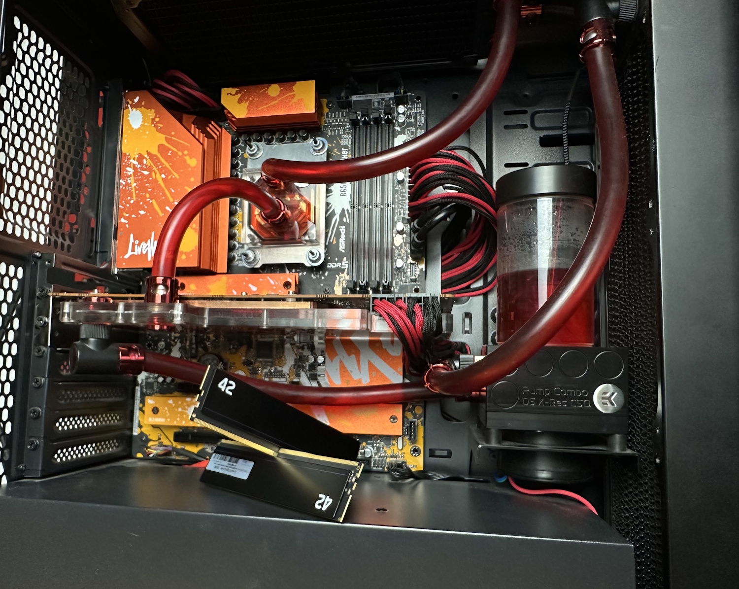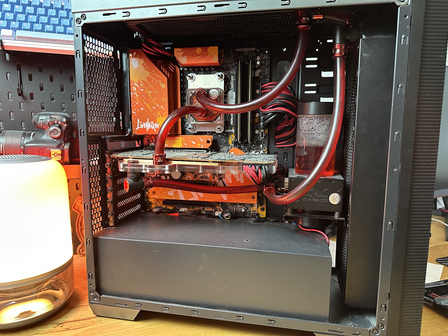 Der Plan steht, viele Bilder konnte man auch schon in den vorherigen Kapiteln erhaschen. Die Benchmarks starten mit dem Einholen einer Baseline mit dem zuvor montiertem Kühlsystem, bestehenden aus einem 360×45 mm und einem 240×45 mm Alphacool Radiator komplett mit Noctua NF-A12x25 G2 Lüftern bestückt. Eine EKWB D5 Reservoir Kombi sorgt für den nötigen Durchfluss. Mit im Loop befindet sich noch ein Liquid Extasy GPU Kühler für die AMD RX 6900 XT, der in diesem Test aber nur die Leerlauf Temperaturen der GPU unter Kontrolle halten muss. Die Lüfter sind auf ca. 700 RPM fixiert und auch die Pumpe läuft auf einer konstanten Drehzahl, sodass keine Veränderungen durch steigende Temperaturen auftreten. Die Raumtemperatur beträgt konstante 21°C.