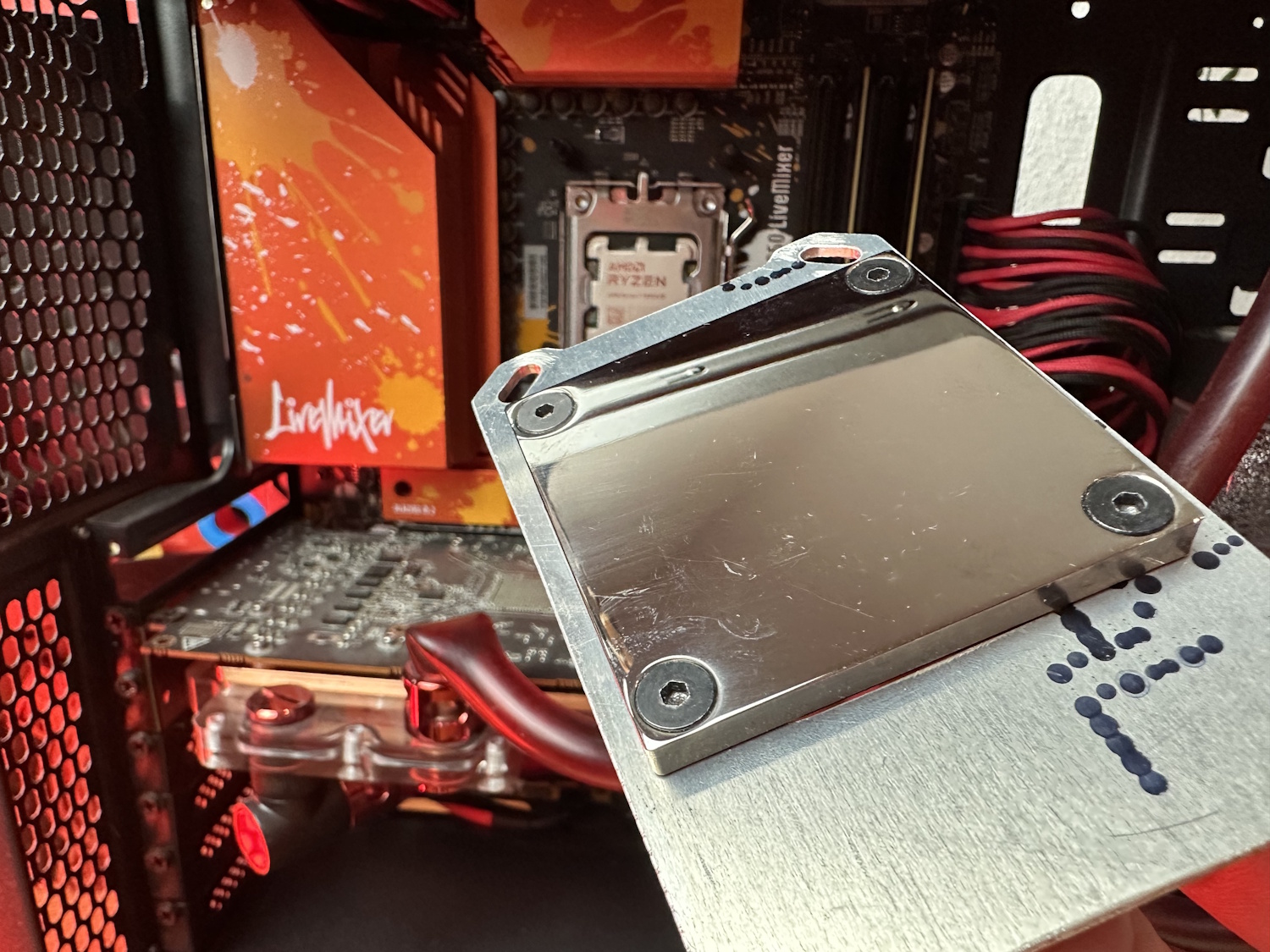 Leider wurde der Stehbolzendurchmesser kommend von der EKWB Backplate zur OEM AM5 Backplate reduziert. Neue UNC Stehbolzen hatte EKWB zum Glück im Programm, sodass nur noch neue Muttern gebraucht wurden. Das bereits erwähnte TG Offset Kit hätte an dieser Stelle auch zur Montage genutzt werden können.