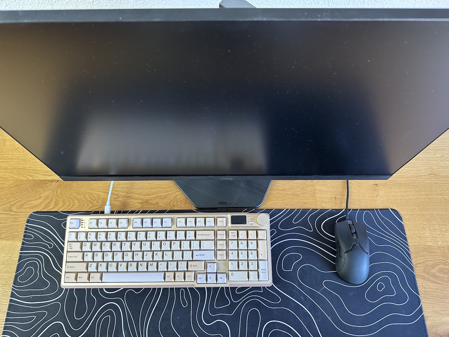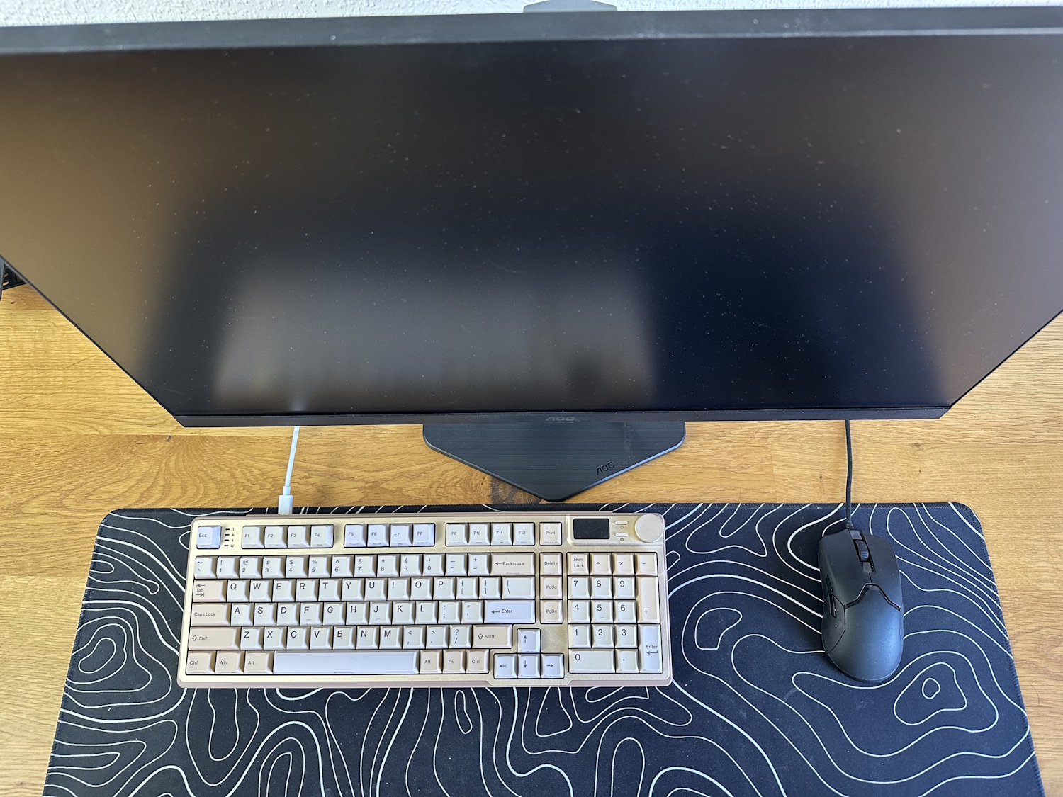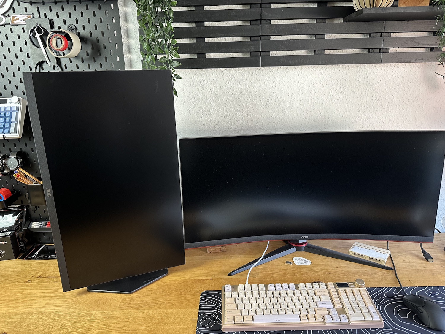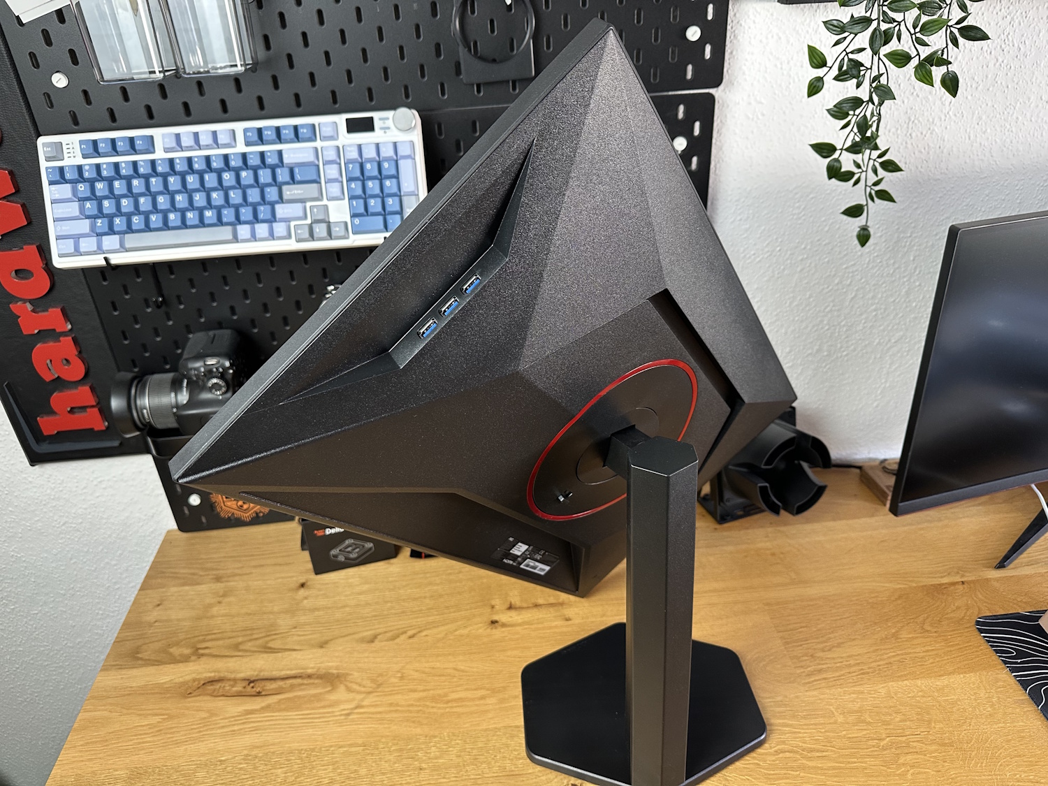 Schön in den Bildern zu sehen ist die deutlich bessere Anti Glare Beschichtung des Q27G4SRU, wodurch die helle Tastatur weniger im ausgeschalteten Monitor reflektiert wird.