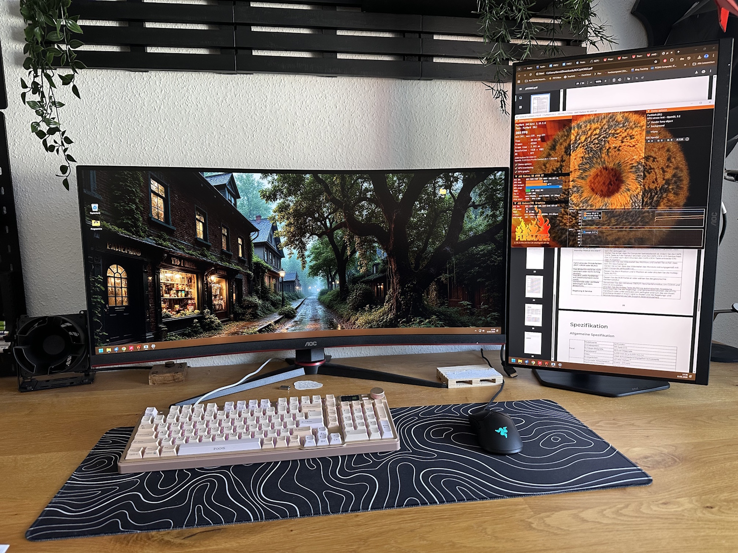 Gemessen zu unserem zuvor getesteten CU34G2XP/BK hält sich die Differenz mit 4 cm aber in Grenzen, die der Q27G4SRU näher an Tastatur und Maus sitzen könnte.