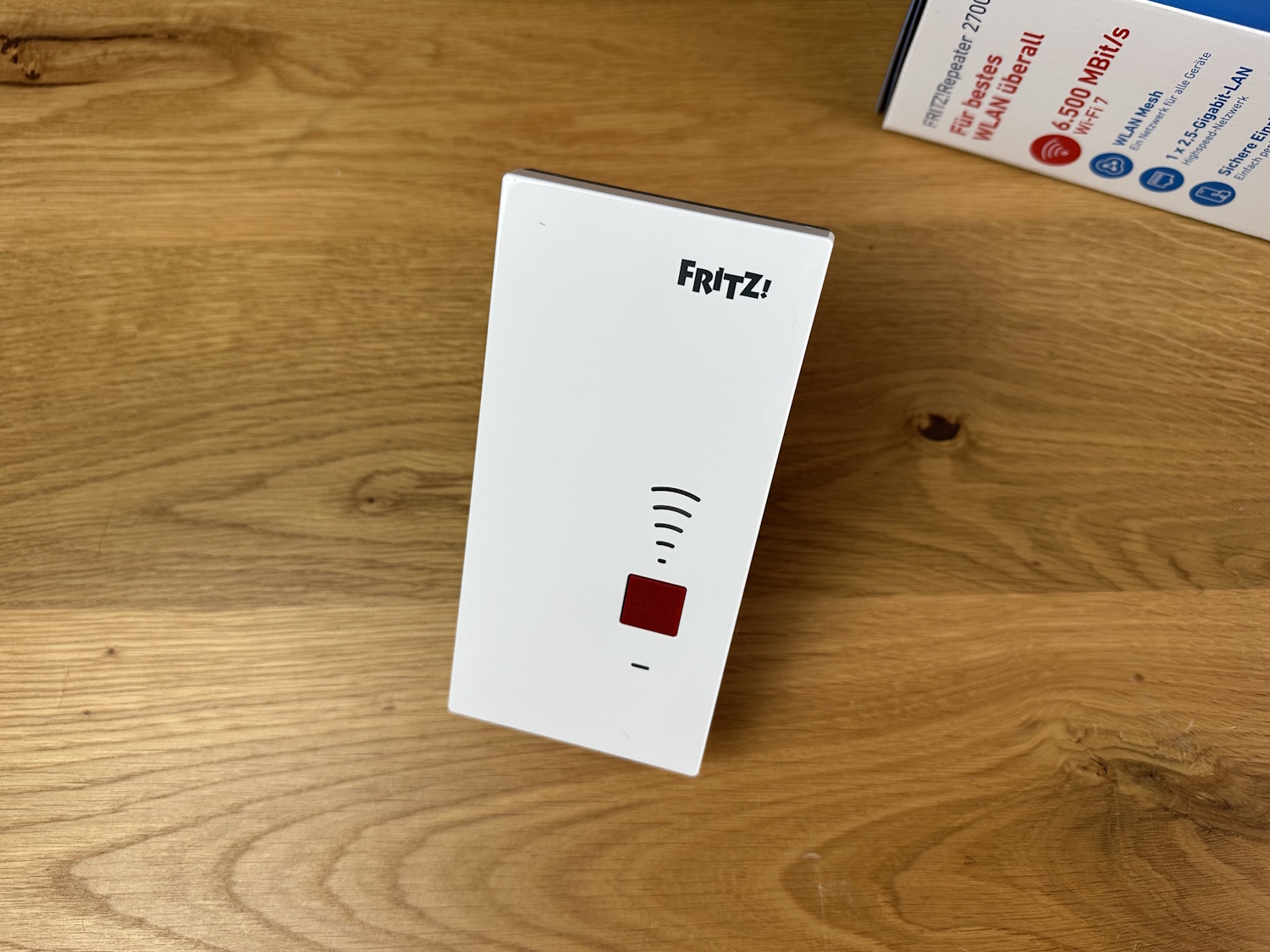 | Geräteeigenschaften | Abmessungen (B x H x T): ca. 76,5 x 155 x 62,6 mm, Mittlere Leistungsaufnahme: 4,1 Watt, Anzeige für Verbindungsqualität und Status, Einfaches Verbinden per Tastendruck (WPS), Verschlüsselung mit WPA3/WPA2 |