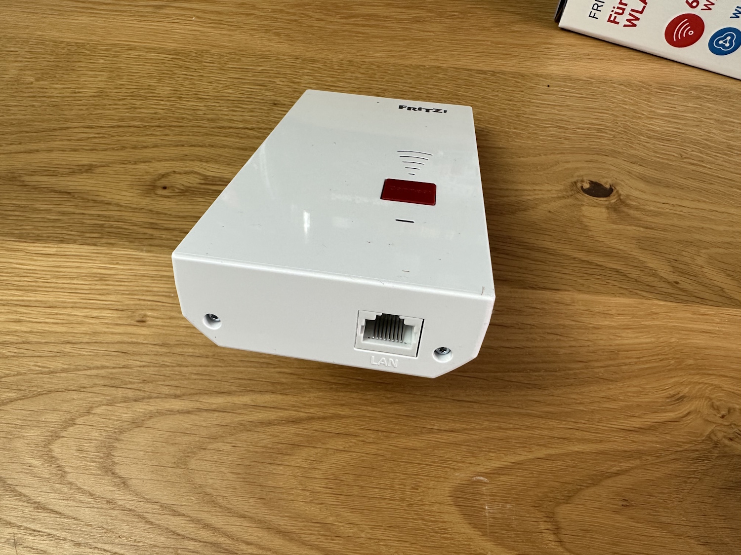 Der gerade neu erschienene FRITZ!Repeater 2700 fügt sich nahtlos ins Design der anderen FRITZ! Produkte ein. Weiß, glänzende Oberflächen auf der Vorderseite, grüne LEDs und rote Akzente. Rückseitig wird grau verwendet, es gibt ein paar Lüftungsöffnungen, auch wenn die 4,22 W, gemessen im IDLE, kaum Abwärme erzeugen dürften. Das gesamte Gehäuse ist aus Kunststoff gefertigt, klar es soll möglichst das Wi-Fi Signal nicht beeinträchtigen, besser wäre da vermutlich nur noch Pappe. Auf der Unterseite befindet sich der 2,5 GBit/s LAN Anschluss, der entweder als LAN Brücke für den Repeater selbst oder im reinen WLAN Modus für den Direktanschluss von Endgeräten genutzt werden kann. Letzteres also wie ein übergroßer WLAN Stick.