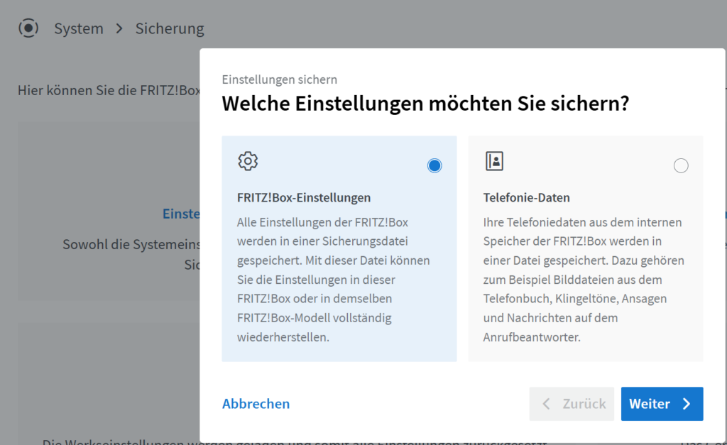 Es heißt also nicht direkt den alten Router abstöpseln und die neue FRITZ!Box 7690 installieren. Wir laden zuvor einmal alle aktuellen Einstellungen in Form einer Setupdatei herunter.