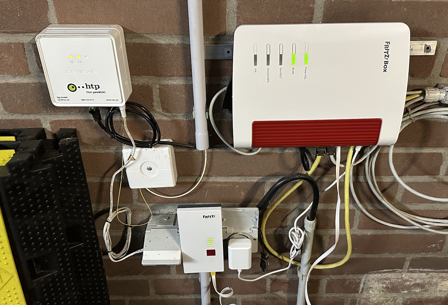 Dabei besteht das Netzwerk, in unserem konkreten Fall, aus mehreren FRITZ!Box 7490 Modellen, die als Repeater fungieren, etlichen Endgeräten, Smartphones, TVs, Laptops und natürlich der Heimserver mit Cloud, Home Assistant, Plex, N8N etc.