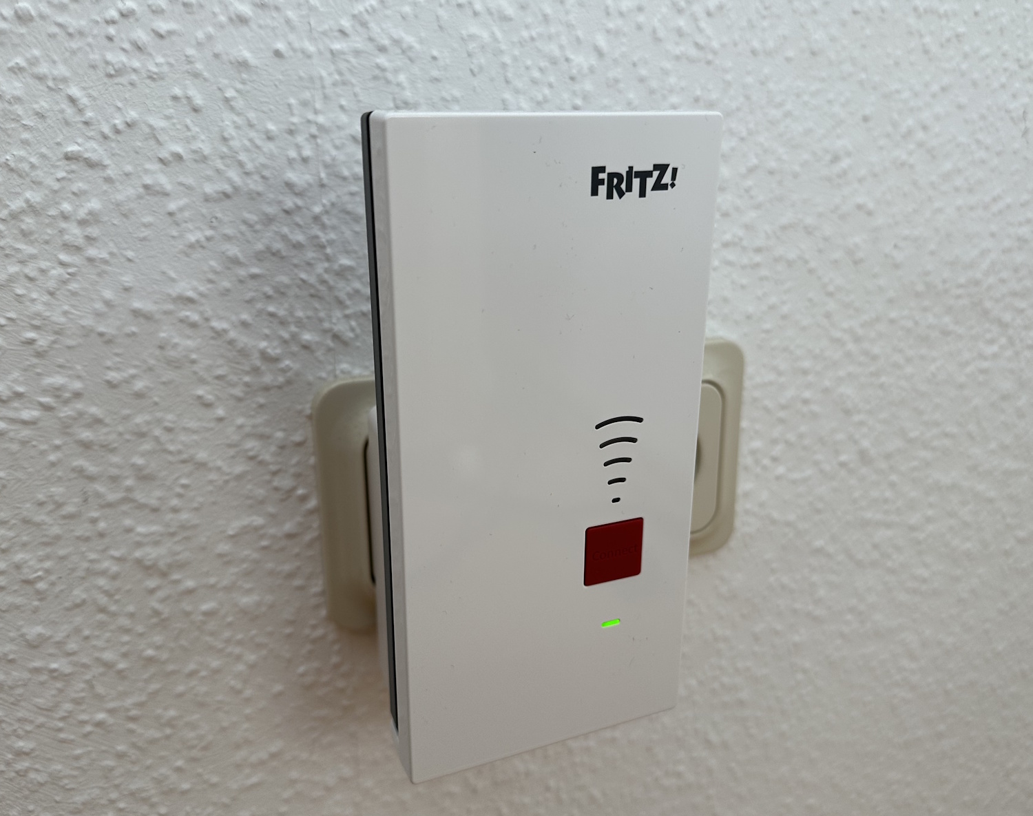 Der Repeater wird lediglich in die Steckdose gesteckt, nach dem Hochfahren (untere LED blinkt langsam), wird einmal die große, rote Connect Taste gedrückt. Jetzt innerhalb von 2 min auch am Router die entsprechende Connect Taste bzw. WPS Taste drücken (je nach FRITZ!Box Modell) und schon verbindet sich der 2700 selbständig und geht eine Mesh Verbindung mit eurem Router ein. Die LEDs für die Verbindungsqualität erleuchten entsprechend des Zustands – ihr habt eine erfolgreiche Verbindung. Das vorgehen lässt sich so ebenfalls auf Router anderer Hersteller adaptieren, zumindest für den Repeater-Betrieb ohne Mesh.