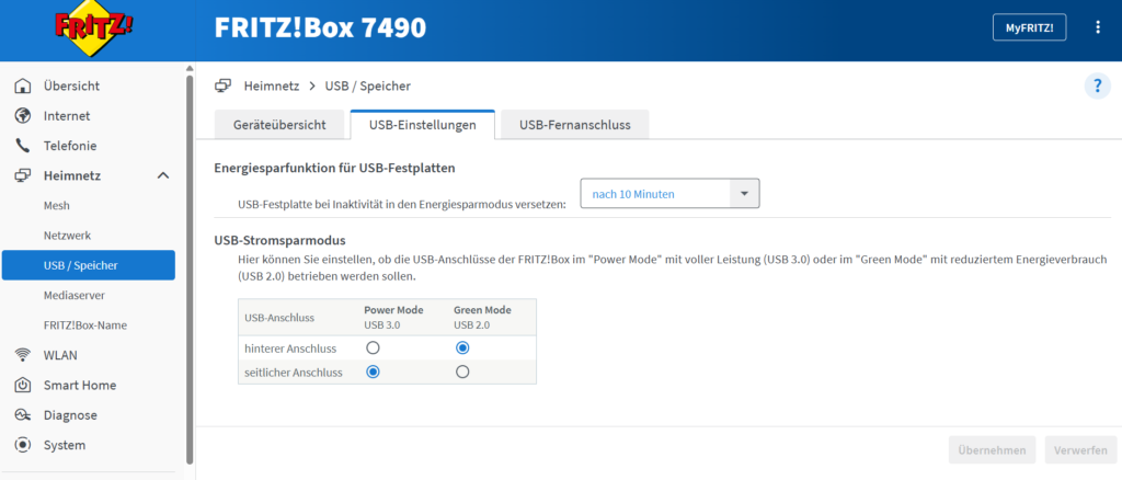Etwas kontrovers bei einem 230€ Flaggschiff Router, die FRITZ!Box 7690 hat nur einen USB 2.0 Anschluss verbaut. Selbst die 7490 und auch die 6690 besitzen beide je zwei USB 3.0 Anschlüsse. Auch wenn dies aufgrund der im Diagramm zu sehenden Übertragungsraten bei der 7490 gar nicht nötig gewesen wäre.