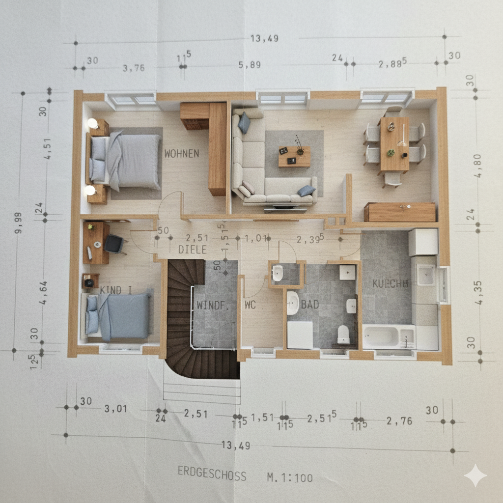 Beim Überprüfen der WLAN Reichweiten und Geschwindigkeiten haben wir uns bewusst gegen synthetische Einzeltests unter Idealbedingungen entschieden. Es war also zu jeder Zeit das gesamte Netzwerk am Router angeschlossen. Dies soll für reelle Datenraten, wie sie später auch bei euch auftreten, sorgen. Mehrere WLAN Geräte in Nutzung, WLAN Netze der Nachbarn in Reichweite – der Standard in eigentlich jedem Zuhause. Die Testumgebung ist ein Zweifamilienhaus mit Kelleretage, Erdgeschoss und zur vollwertigen Etage ausgebauten Dachgeschoss. Wohingegen das Erdgeschoss massiv gebaut ist, besteht der Ausbau im Dachgeschoss hauptsächlich aus Leichtbauständerweise mit Rigips.